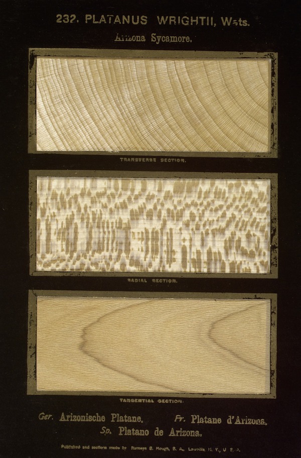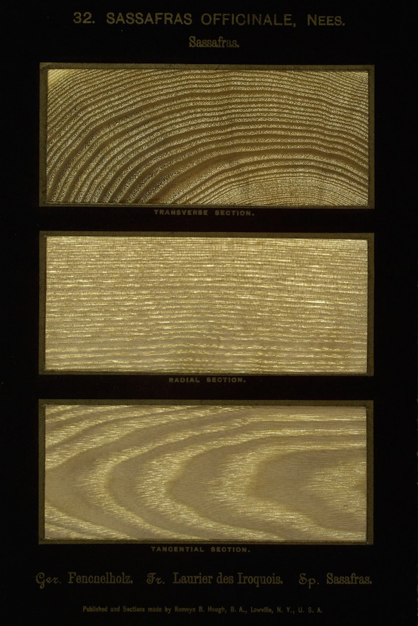a selection of pages from Romeyn Beck Hough’s epic fourteen volume work The American Woods, a collection of more than 1000 paper-thin wood samples representing more than 350 varieties of North American tree